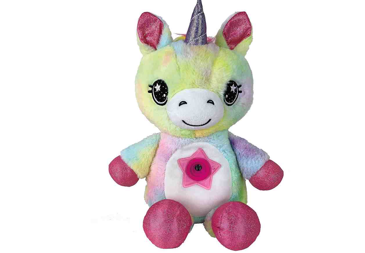 • Un arcobaleno di colori: il tuo bambino adorerร  coccolarsi con il suo peluche amico giorno e notte. La semplice pressione sulla pancia cambia la luce in sei diversi colori. Scegli un unicorno, un cucciolo, un gattino o un dinosauro