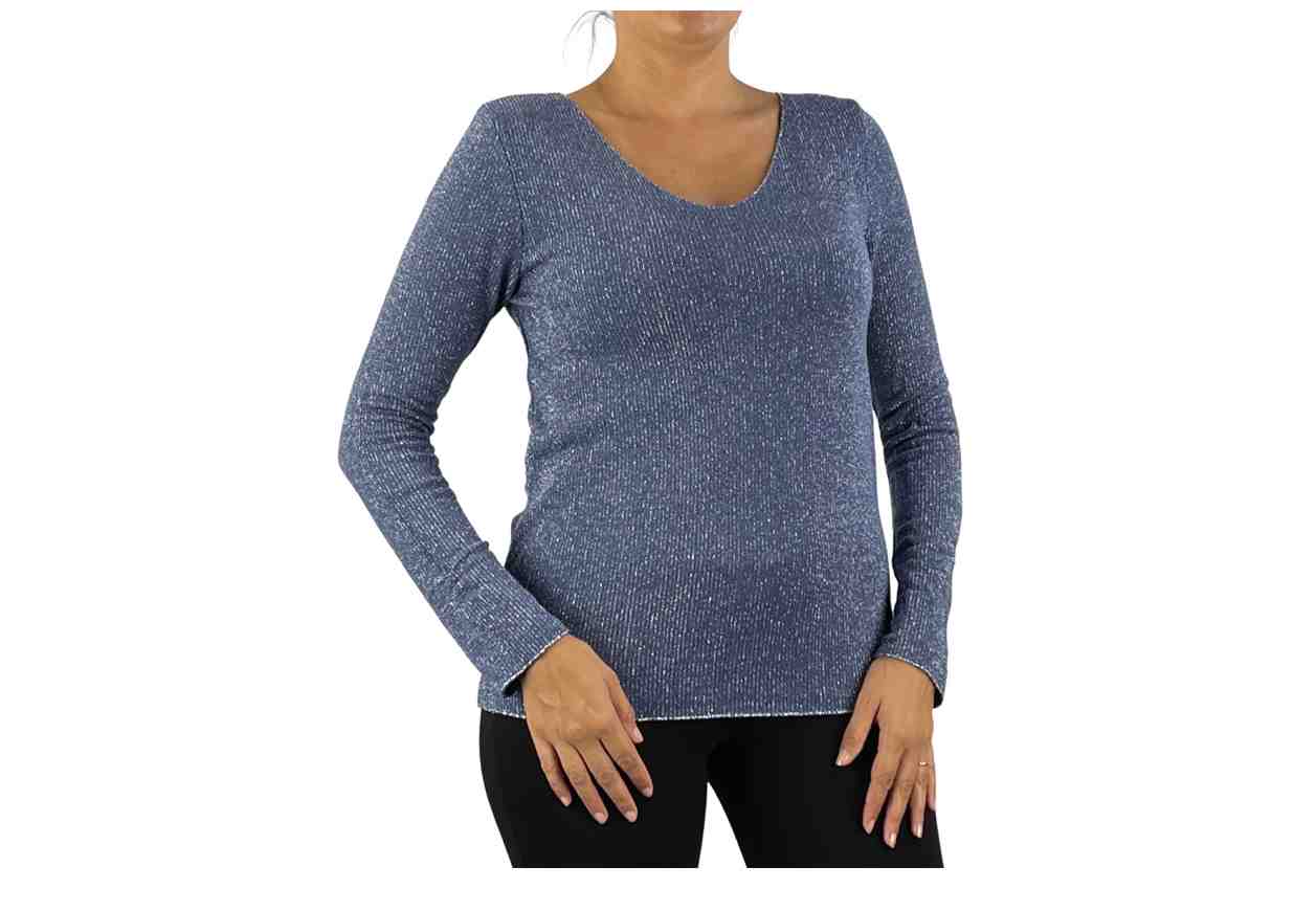 *PL Maglia in tinta unita con dettaglio filo lurex, scollo a V, manica lunga.