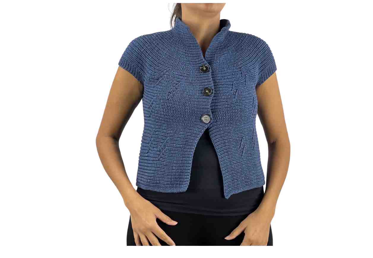 *PL Cardigan effetto uncinetto in tinta unita, manica corta e bottoni frontali.