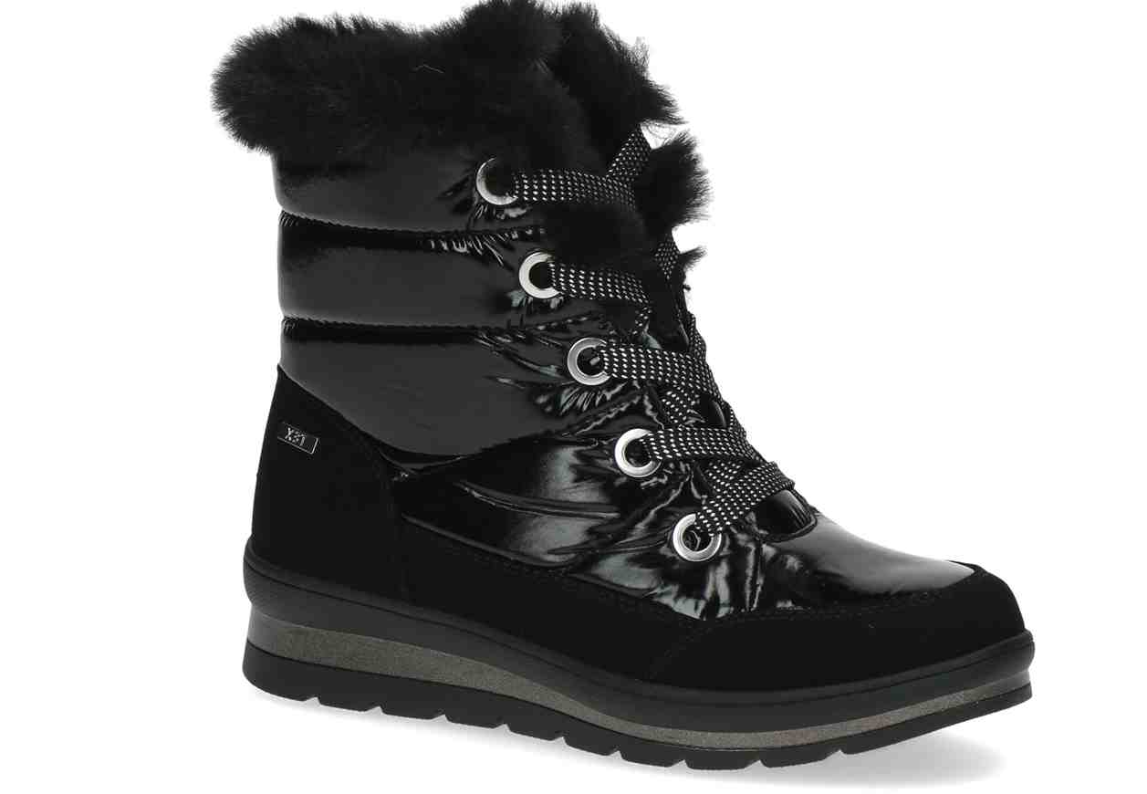 Tronchetto con lacci filo lurex, inserti in ecopelle, ecopelliccia interna. Zeppa 4cm.