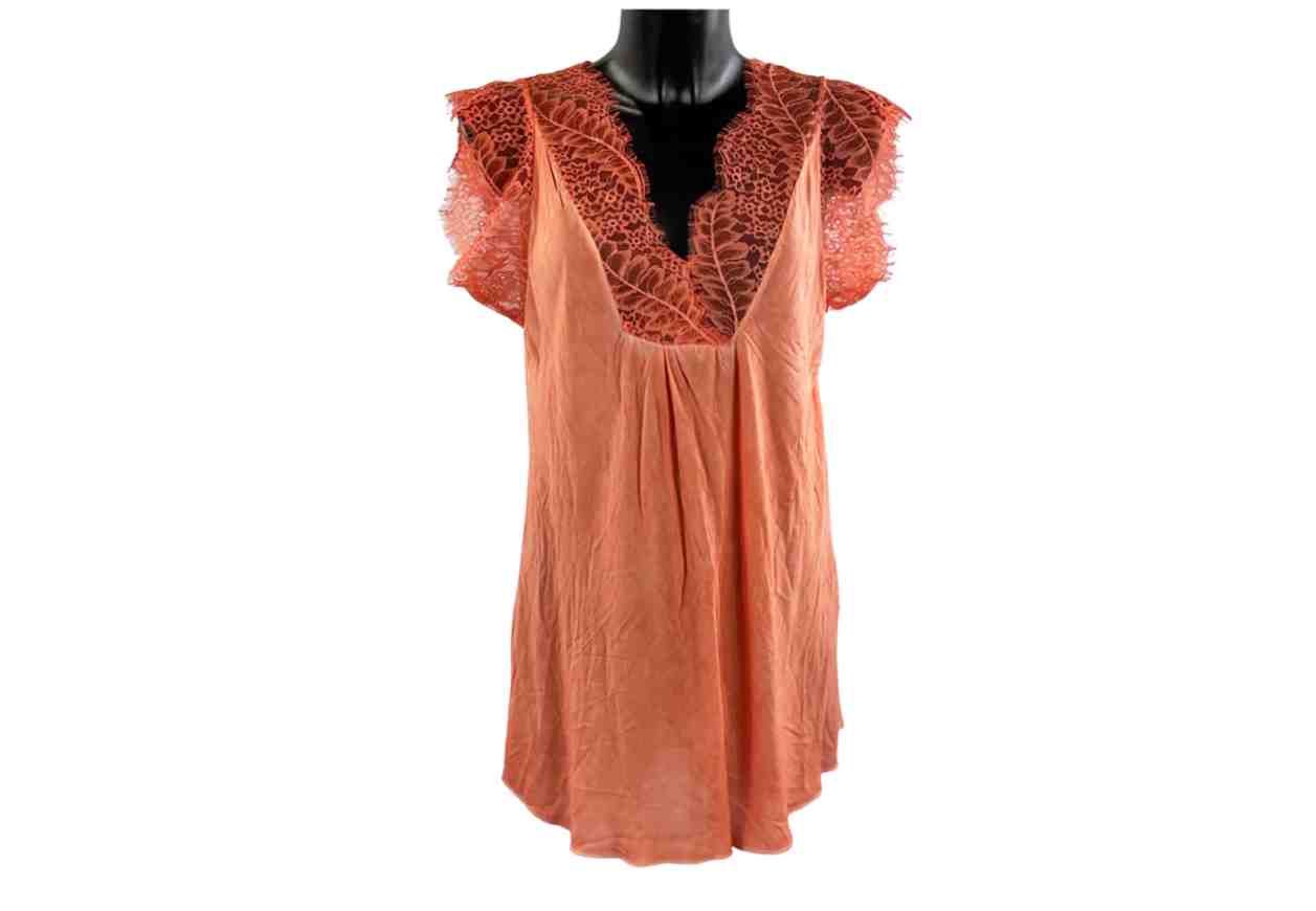 PINKLOVE Maglia in tinta unita, pizzo su scollo a V e maniche, pence frontali.