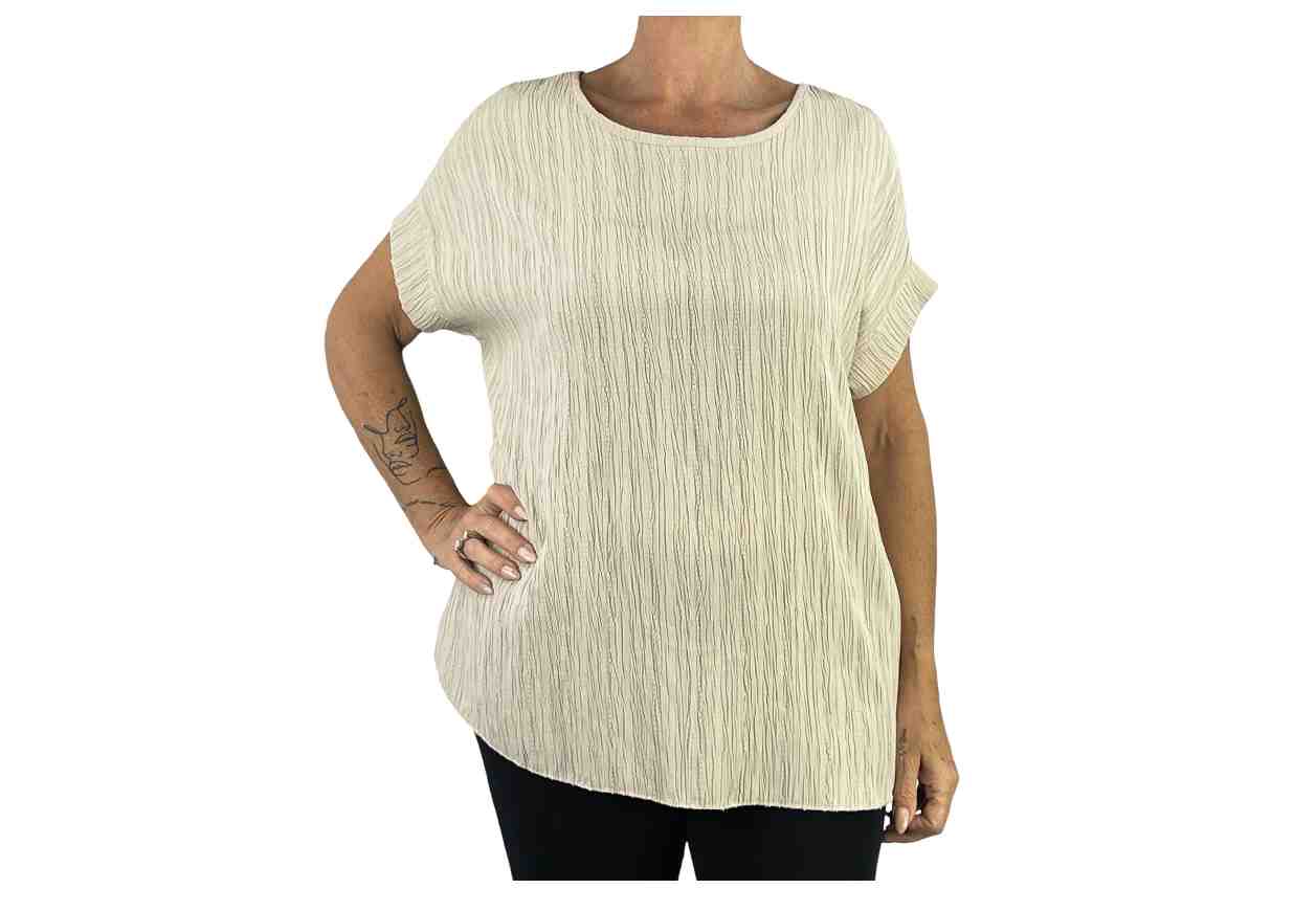 PINKLOVE Blusa goffrata in tinta unita, manica corta.