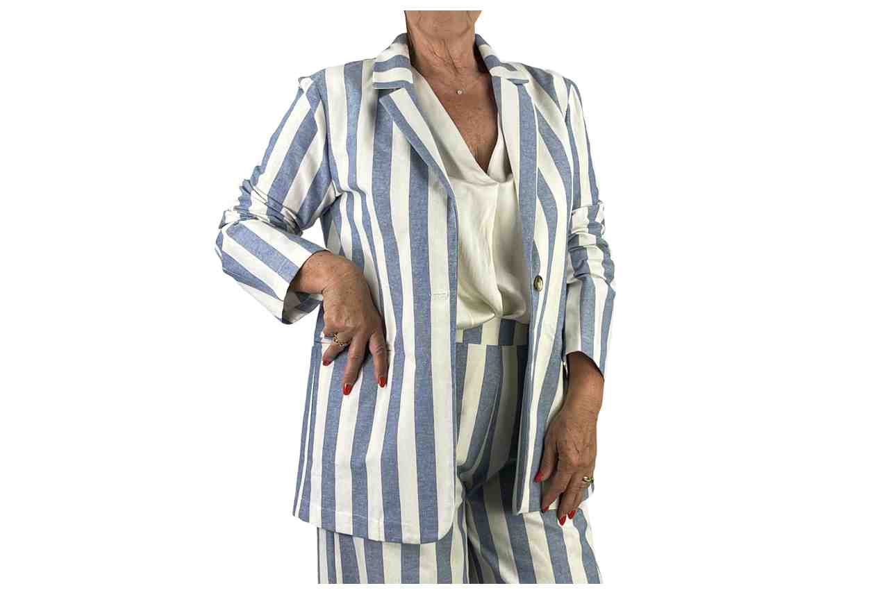 SUSY STAR Giacca a righe con collo rever, bottone e tasche frontale.