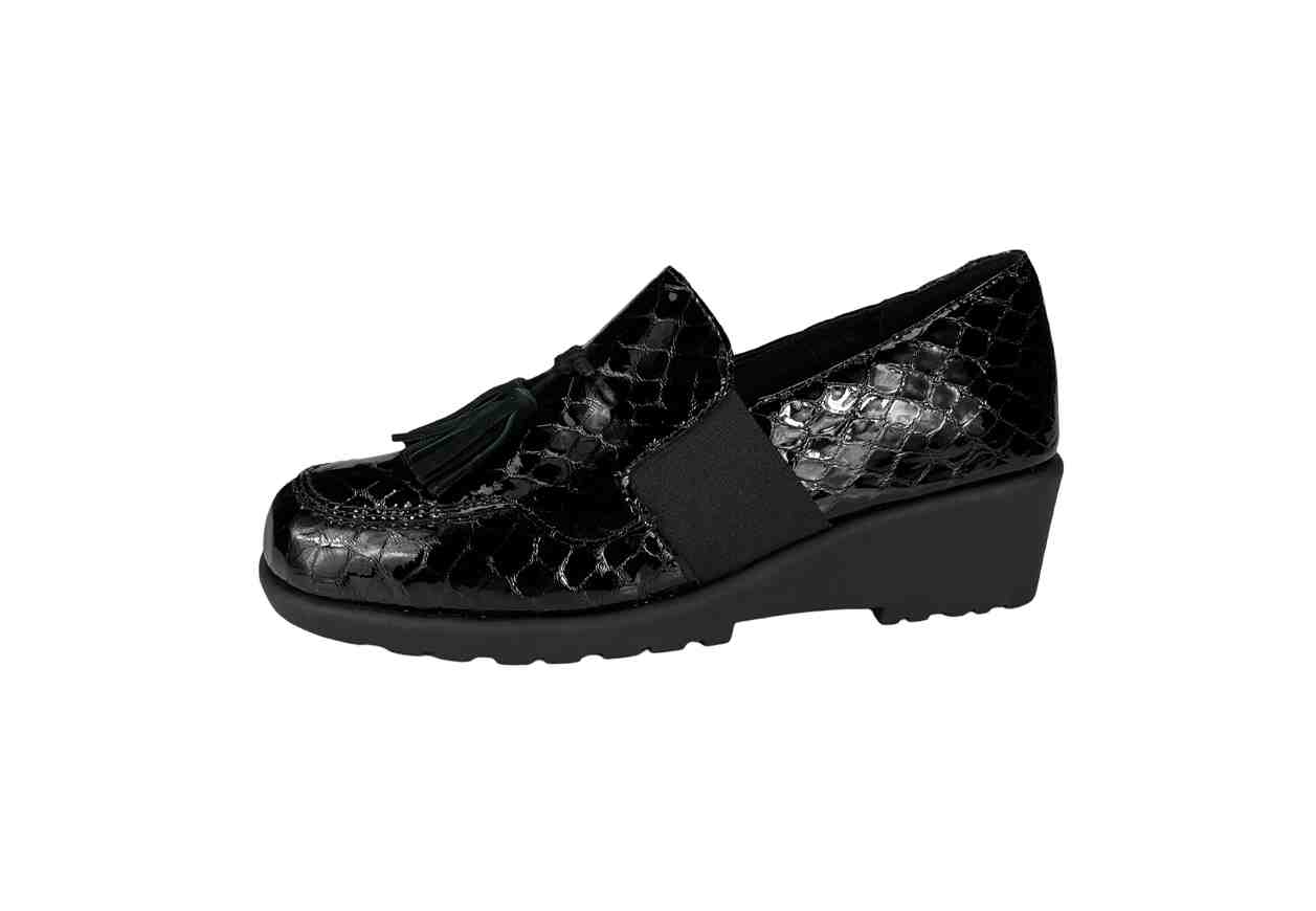 GREEN LAND Mocassino in pelle, in stampa cocco con applicazione nappine frontali.