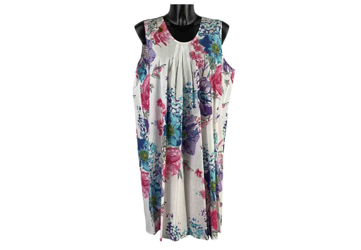 Abito smanicato in 100% cotone plissettato sul davanti.