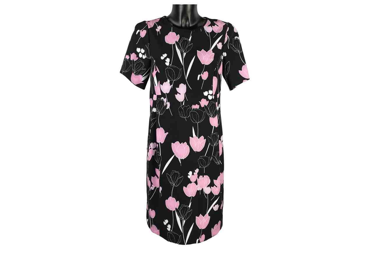 Abito in poliestere ed elastane con fodera in acetato, collo ampio e cerniera per indosso.