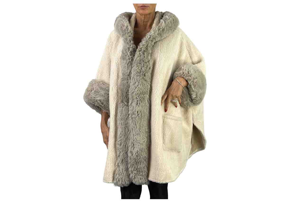 (BF) Mantella effetto teddy, con collo e polsi in ecopelliccia
