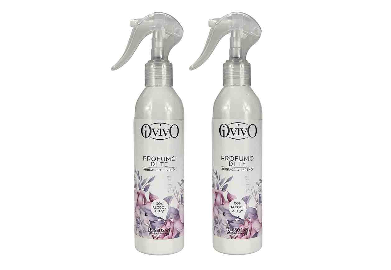 IOVIVO PROFUMO DI TE BENESSERE OLFATTIVO , GRAZIE ALLA NATURALITAโ DEI SUOI INGREDIENTI COMBINA ALCOL ALIMENTARE ED ESSENZE NATURALI BIOATTIVE DI FIORI E PIANTE SECONDO UNA FORMULAZIONE UNICA E IDEALE SIA PER TE CHE PER I VESTITI LA CASA, TESSUTI, IMBOTTITI, SCARPE E CAPELLI.