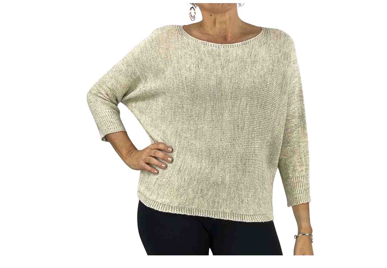 PL Maglia in tinta unita, inserti in lurex, scollo a barchetta, fiocco sul retro.