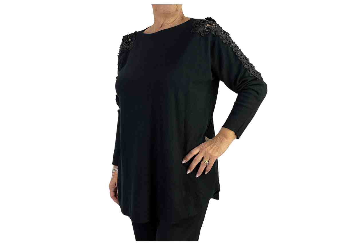 DONNA ELDA Maglia in tinta unita con pizzo e perline su manica lunga.