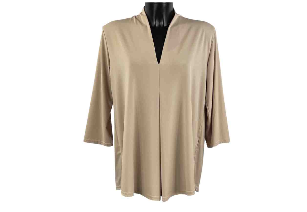 PINK LOVE Maglia in tinta unita con scollo a V, doppia lunghezza e maniche lunghe.