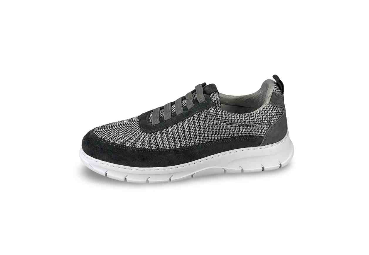 Sneaker uomo con lacci in tessuto tecnico traspirante e pelle, alzata 3,5 cm. soletto estraibile.