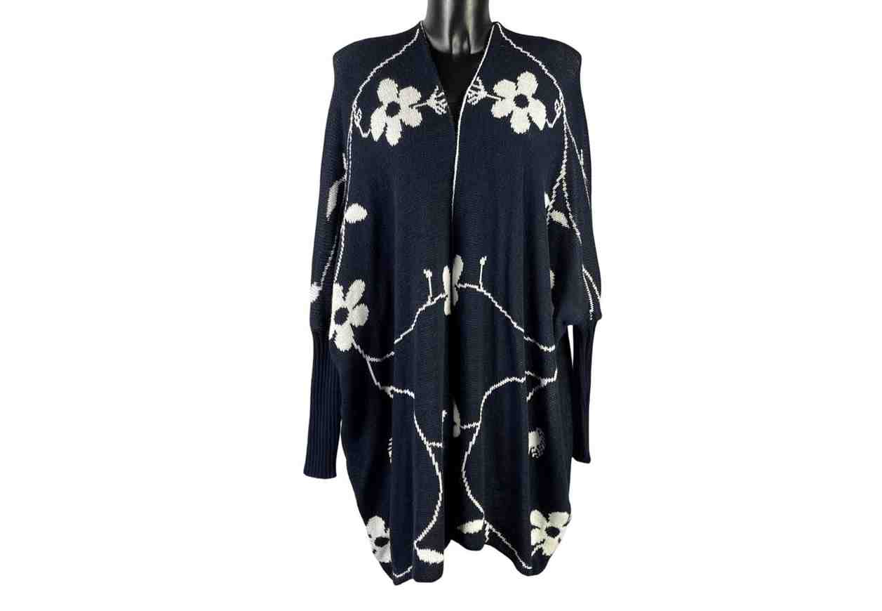 GRETA GARBO Cardigan aperto bicolor misto lana in fantasia floreale, manica a costine.