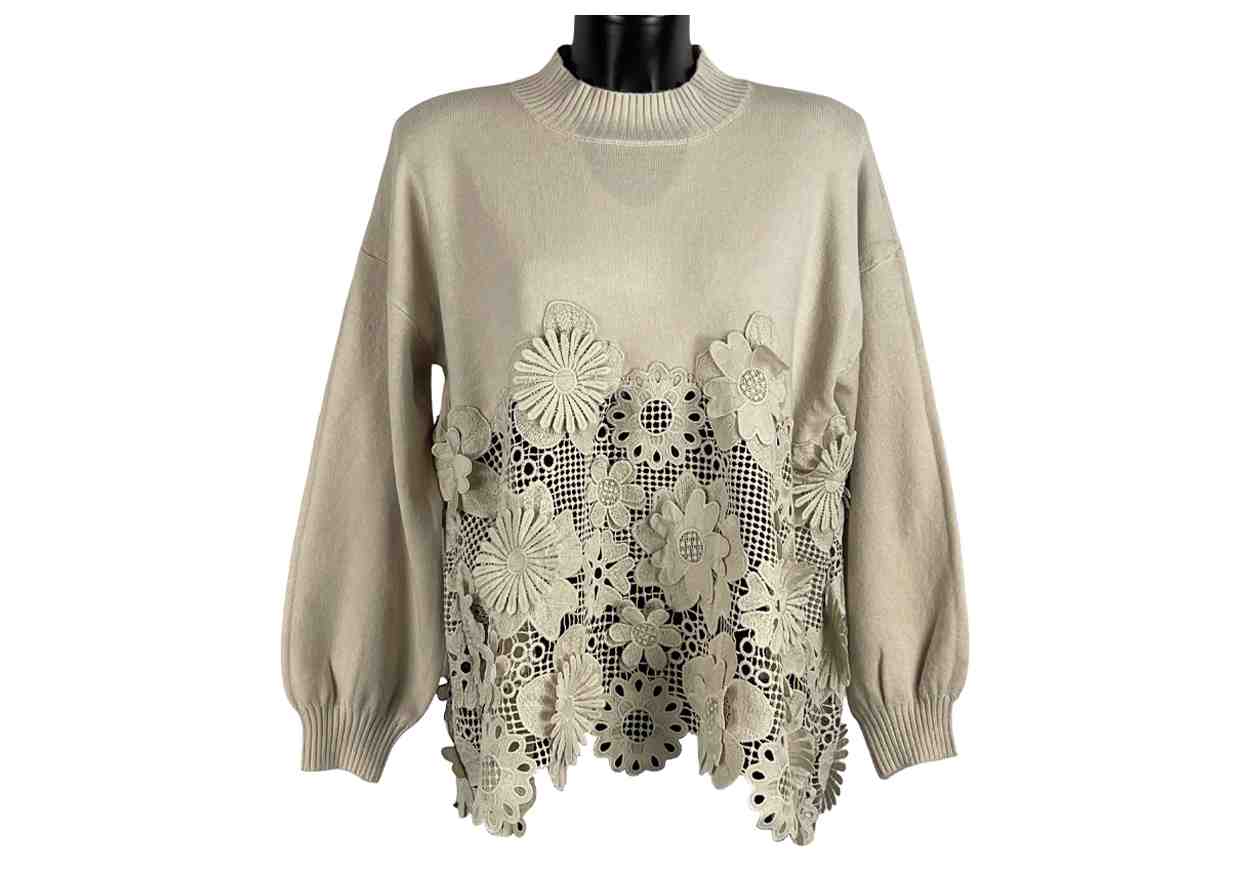PL Maglia in tinta unita con inserto in macramรจ sul fondo.