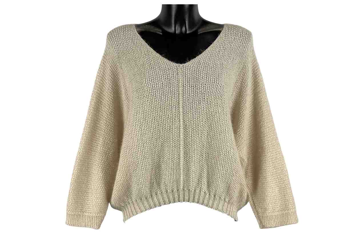 PL Maglia effetto peluche, scollo a V, manica a pipistrello.