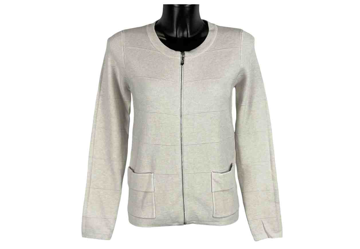 PL Cardigan con zip e tasche frontali, tinta unita.
