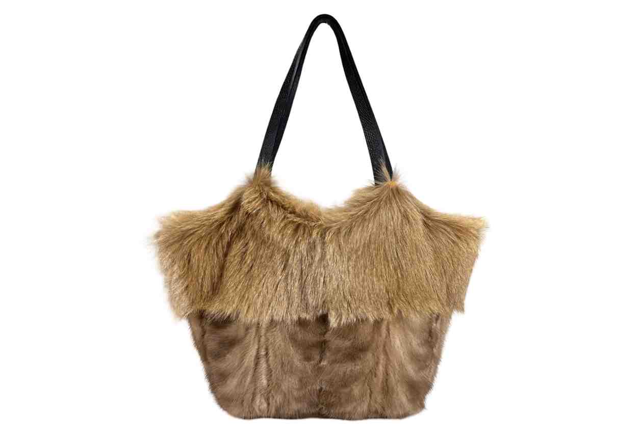 Shopper in marmotta e visone, volpe e visone. Fodera in pelle.