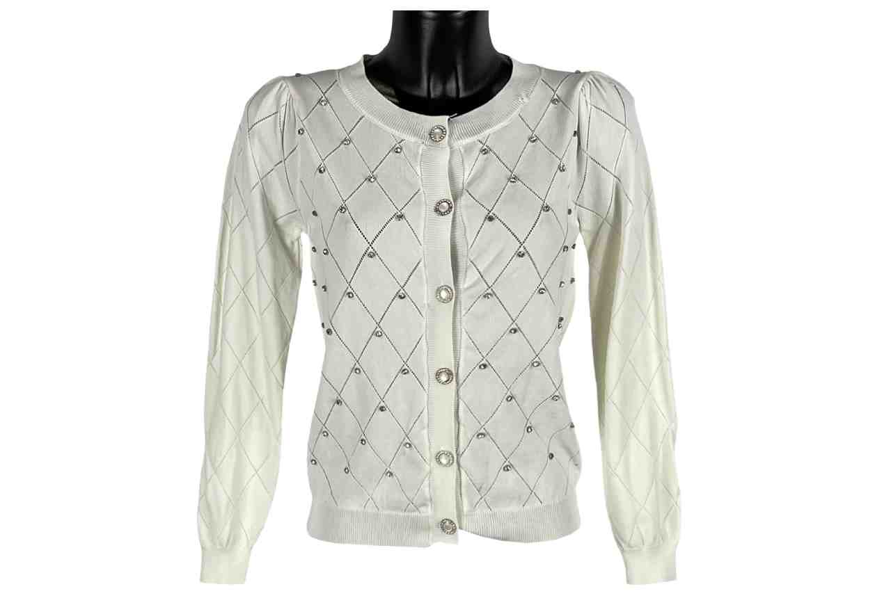 VR Cardigan con motivo a rombi, strass e bottoni gioiello.