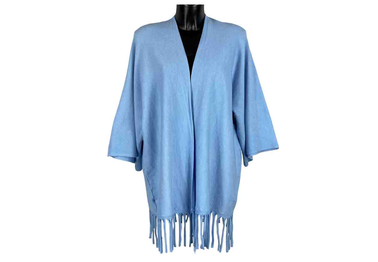 (S) RB Cardigan aperto in tinta unita con frange, maniche a 3/4.