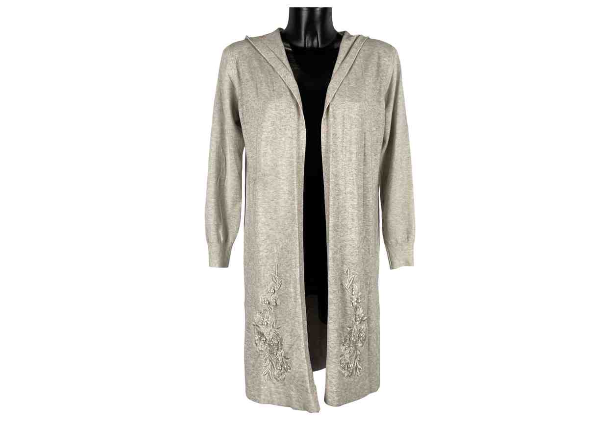 PL Cardigan lungo aperto in tinta unita con perline e ricami.