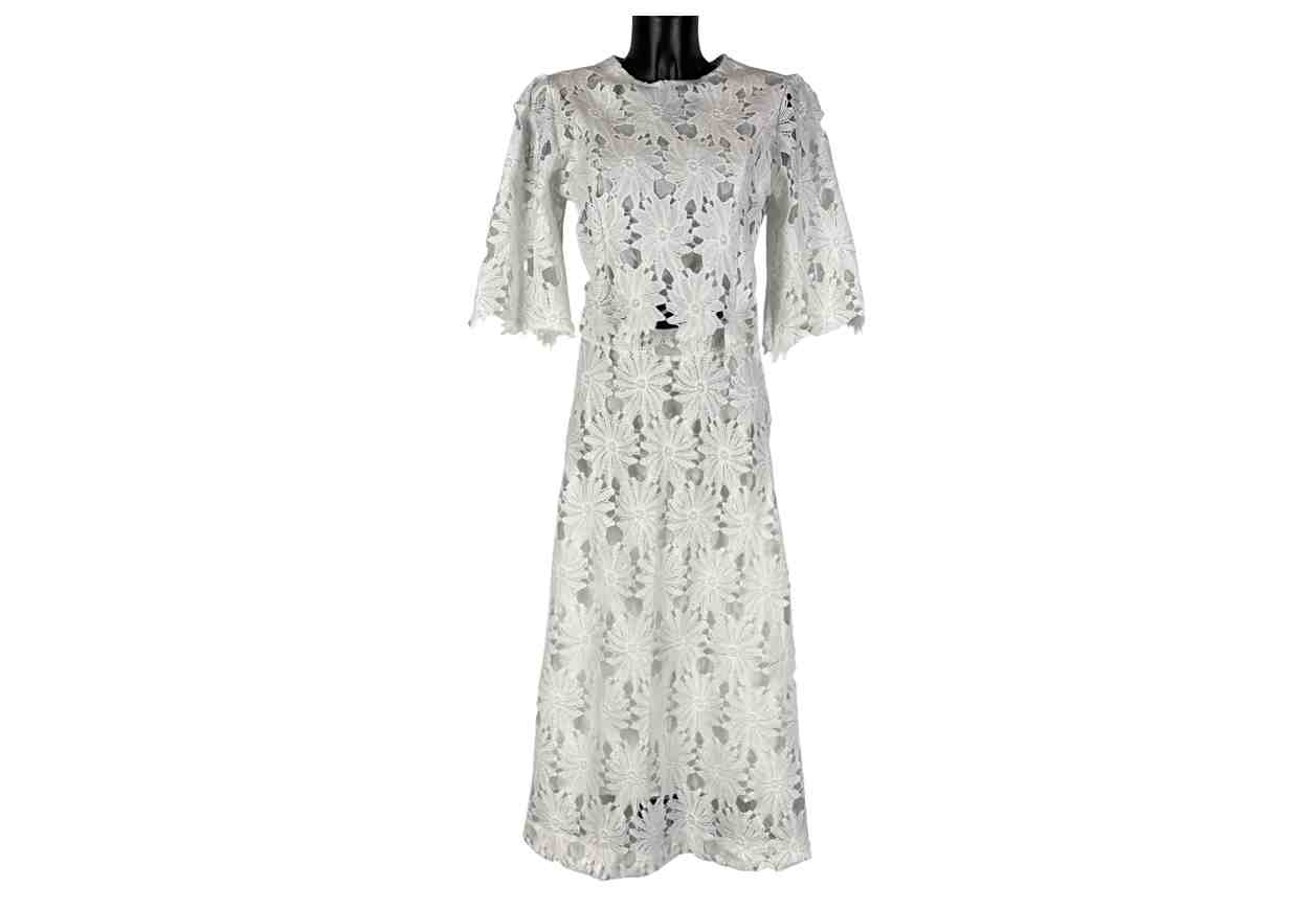VERONICA RIZZI Completo in pizzo con gonna ampia, maglia corta.