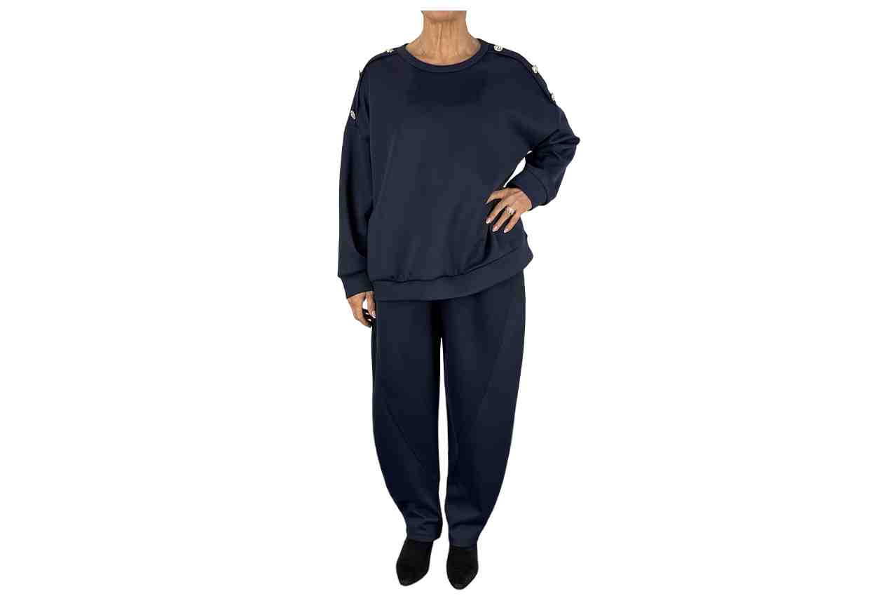RENE‘ BORDEN Completo in tinta unita: maglia con bottoni dorati su spalle e pantalone con tasche ed elastico in vita.