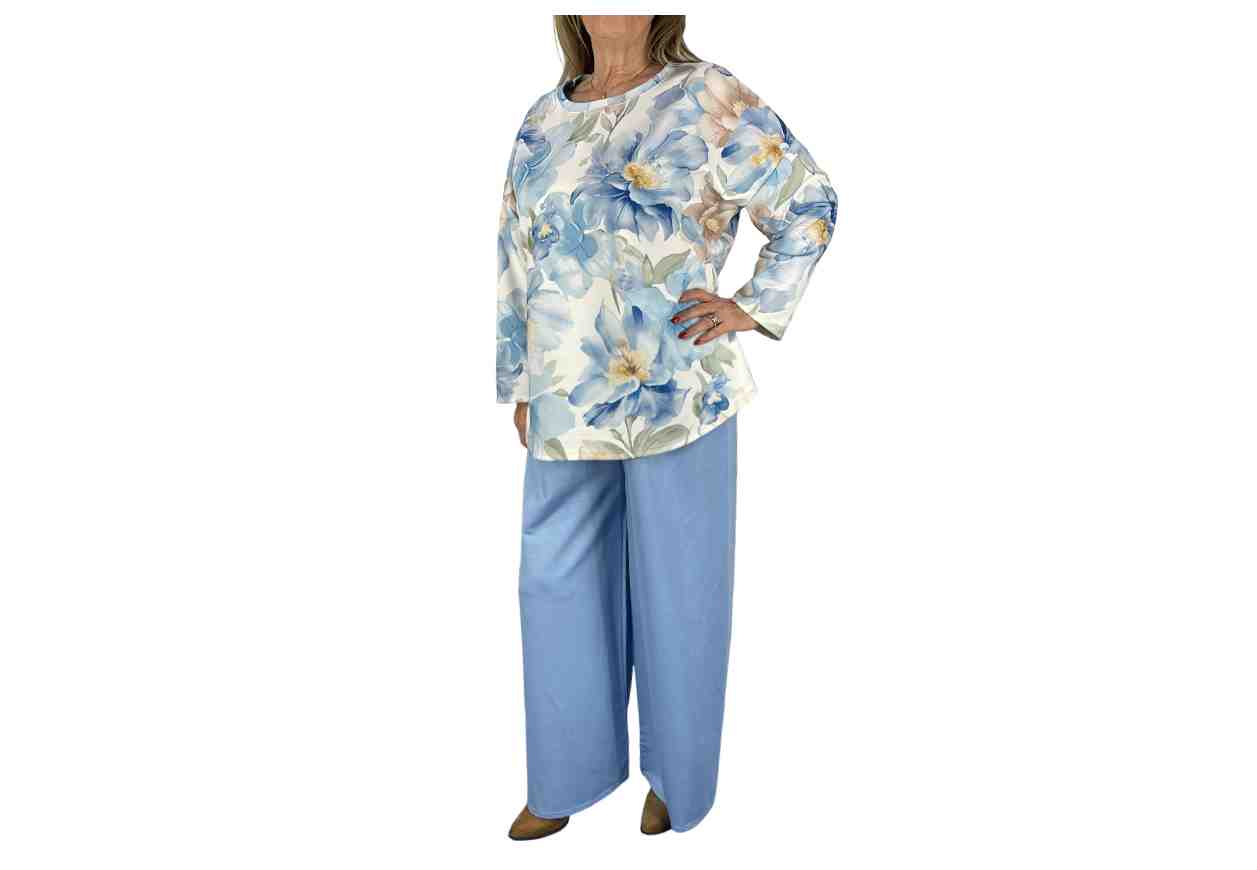 BU COMPLETO con maglia in fantasia floreale e pantalone in tinta unita.