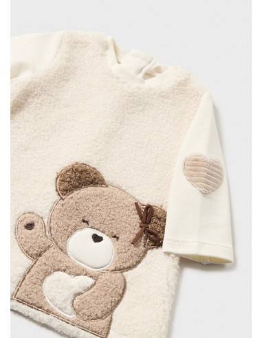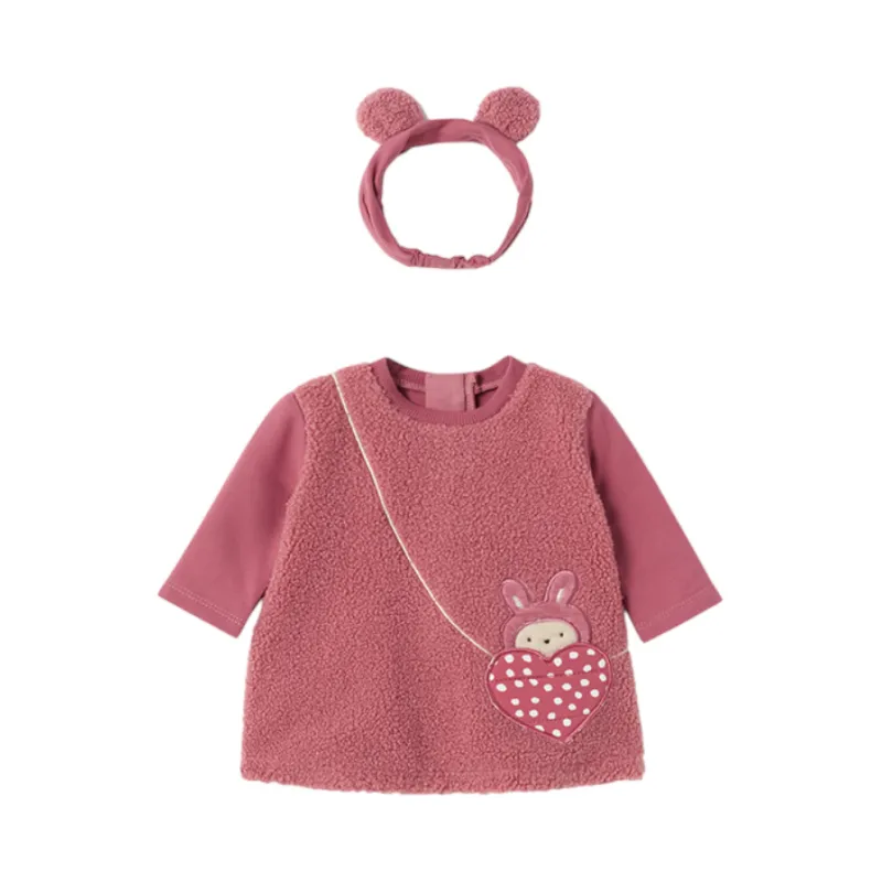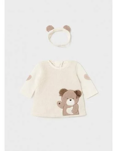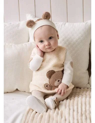 Abito a pellicciotto Mayoral con fascia abbinata. Parte esterna in pellicciotto ideale per un look caldo. Vestito manica lunga per neonato. Chiusura posteriore con cerniera nascosta. Deliziosa fascia per capelli per neonato. Potrai abbinare questo accessorio con tutti i look. Elementi decorativi: applicazione orecchie.