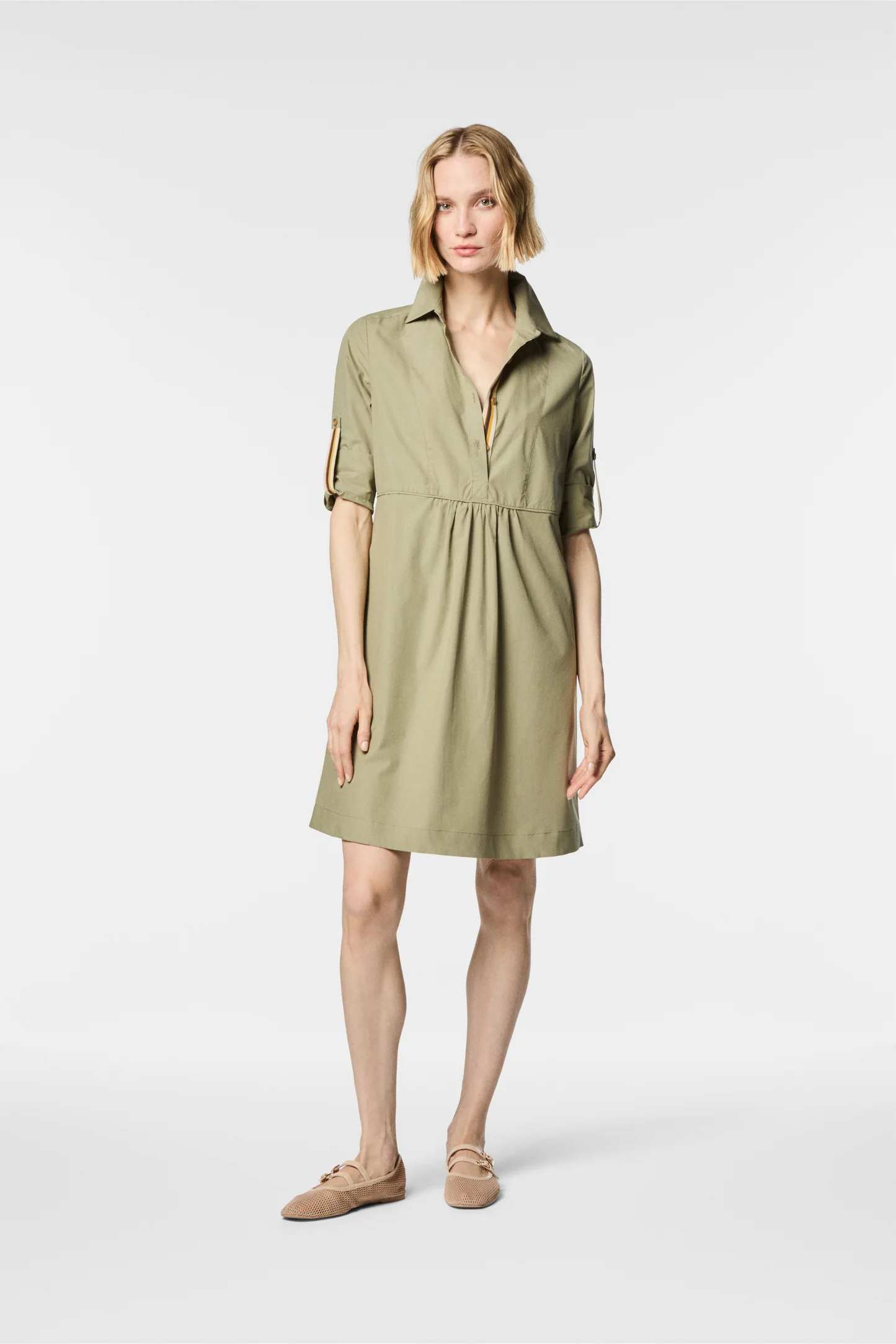 Abito corto informale Maniche a tre quarti arrotolabili grazie a un dettaglio con linguetta Colletto classico Scollatura a V Vita รจ leggermente arricciata per creare una silhouette morbida e femminile Composizione: 50% Cotone 50% Tencel