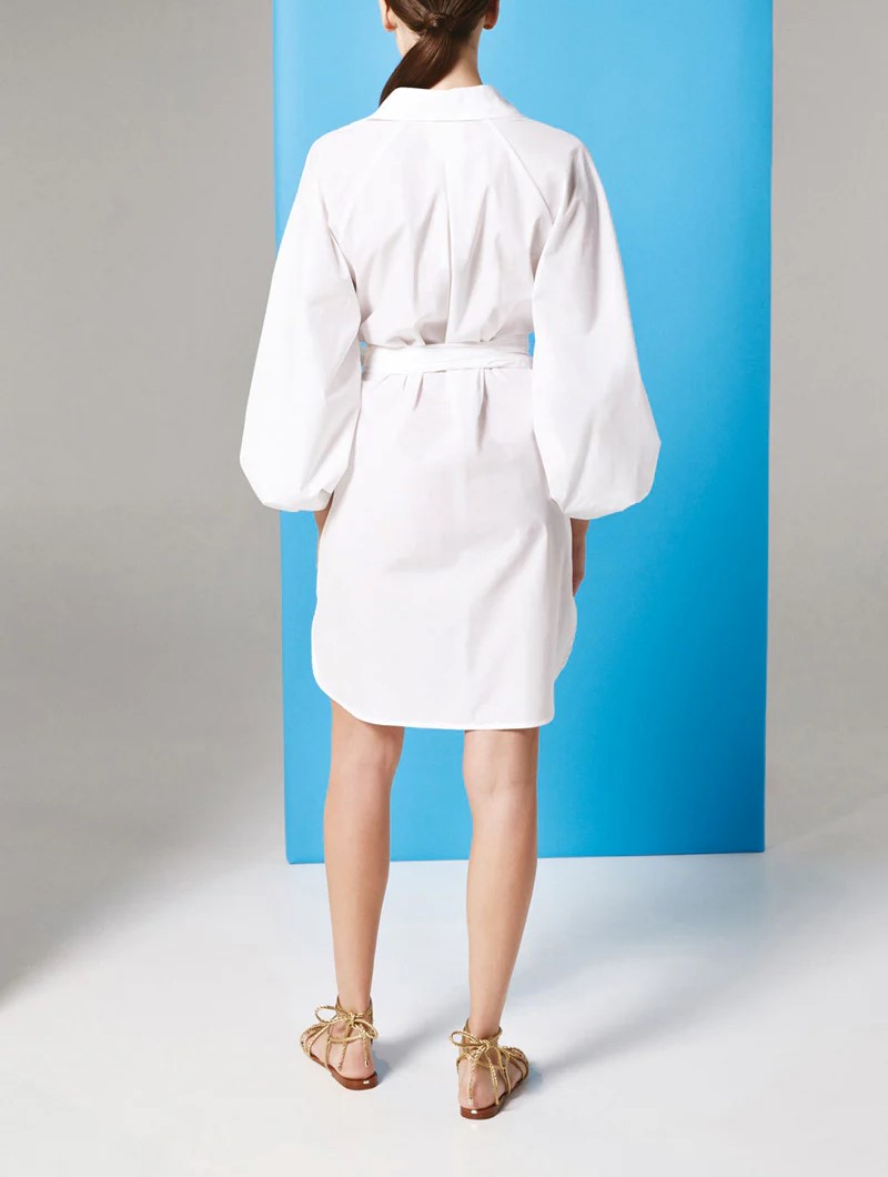 Abito camicia Maniche over Tela paracadute Fila di bottoni centrali Fusciacca Composizione: 95% Cotone 5% Elastan