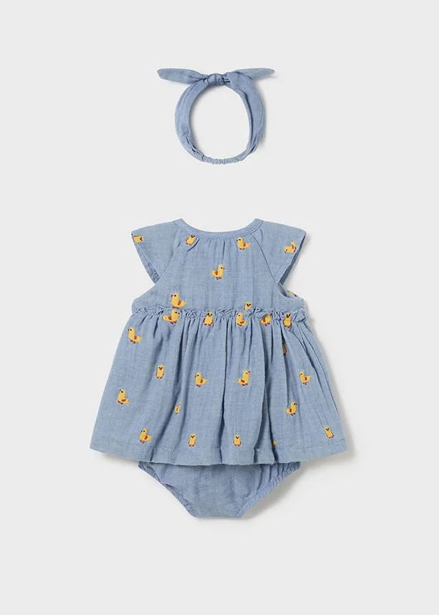 ABITO COPRI PANNOLINO MAYORAL CON FASCIA ABBINATA DENIM CON PULCINI