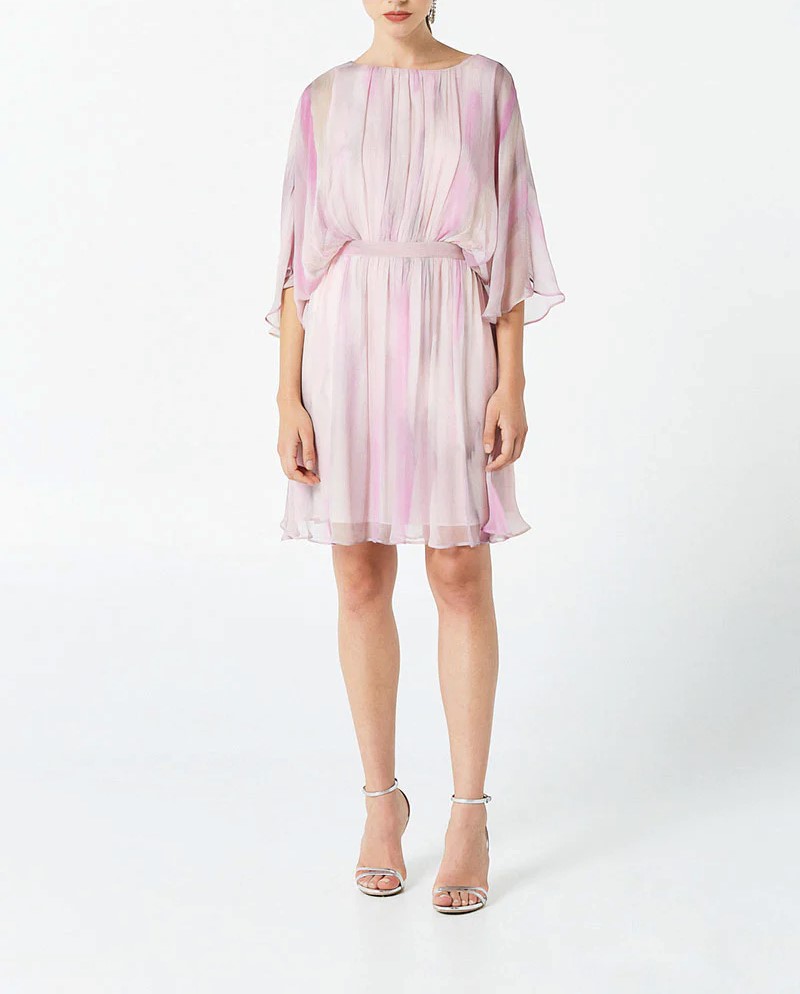 Abito corto in creponne stampato Manica 3/4 ampia Chiusura posteriore. Composizione: 100% Viscosa
