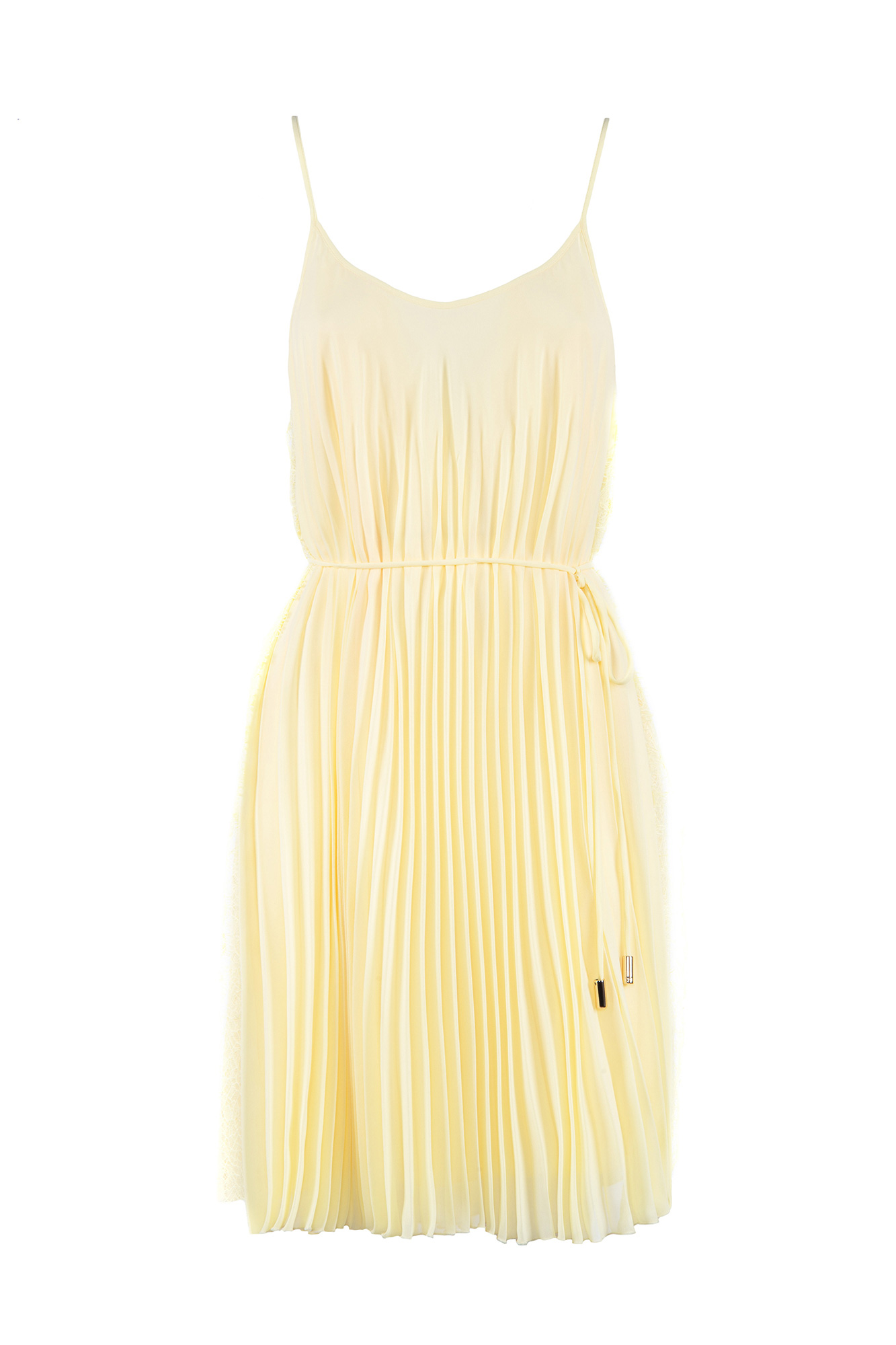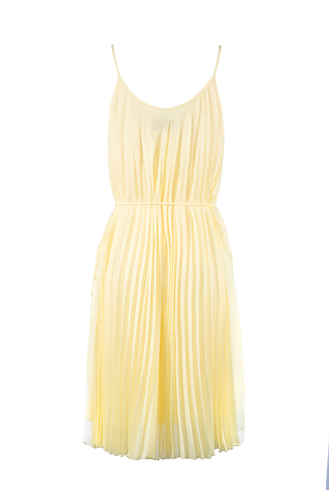 Abito corto in georgette Apertura laterali Dettagli in pizzo Cintina Composizione: 100% Poliestere