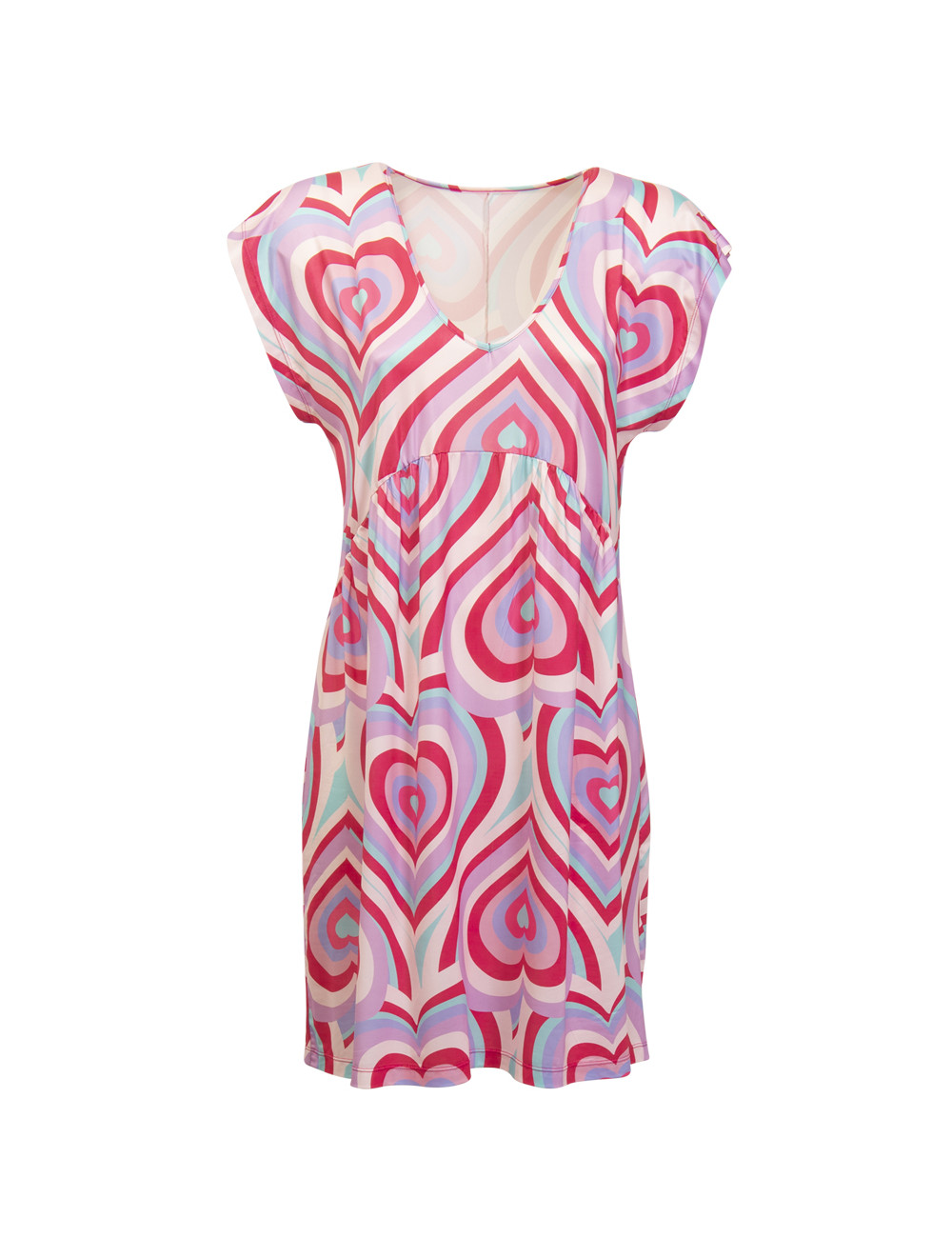 Abito corto Stampa cuore optical Scollatura a V Manica corta Ideale come fuori acqua COMPOSIZIONE TESSILE: Tessuto: 93% Poliestere – 7% Elastam