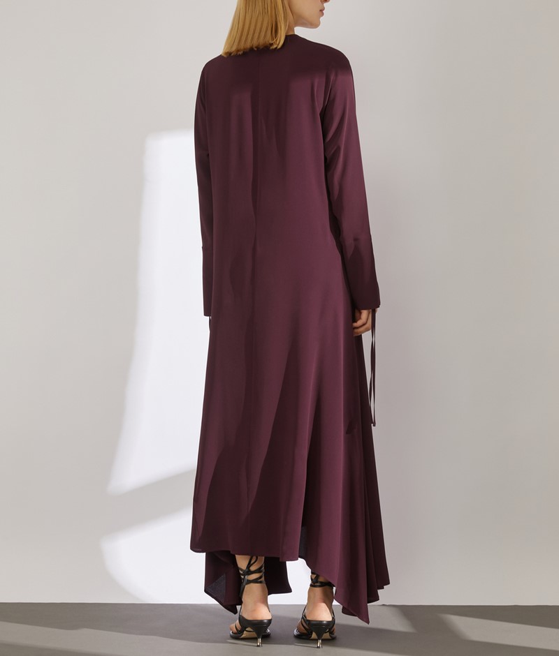 Abito Nara lungo in crepe de chine Scollo a V Maniche lunghe con polsino Design dal volume svasato Composizione: 65% Acetato 35% Seta Made in Italy