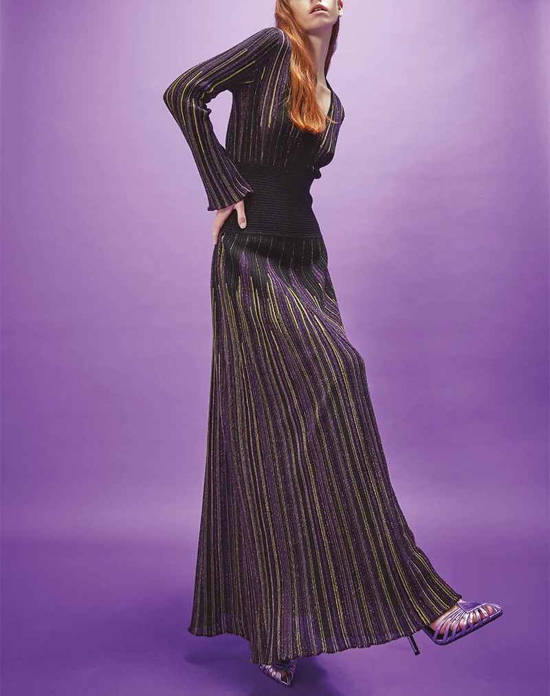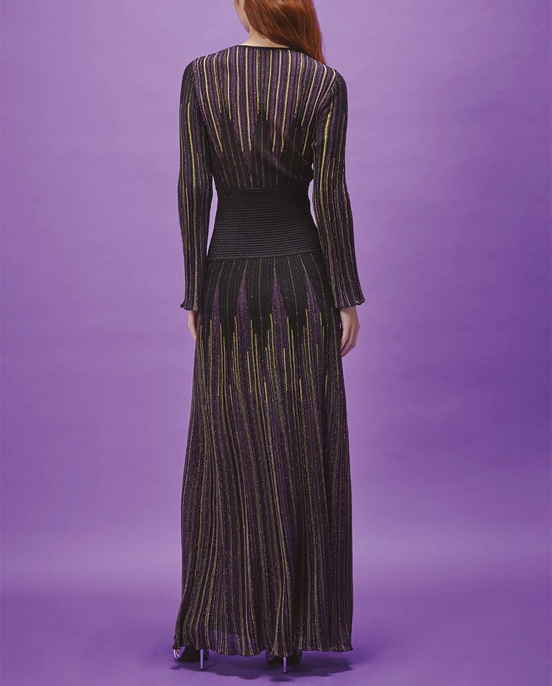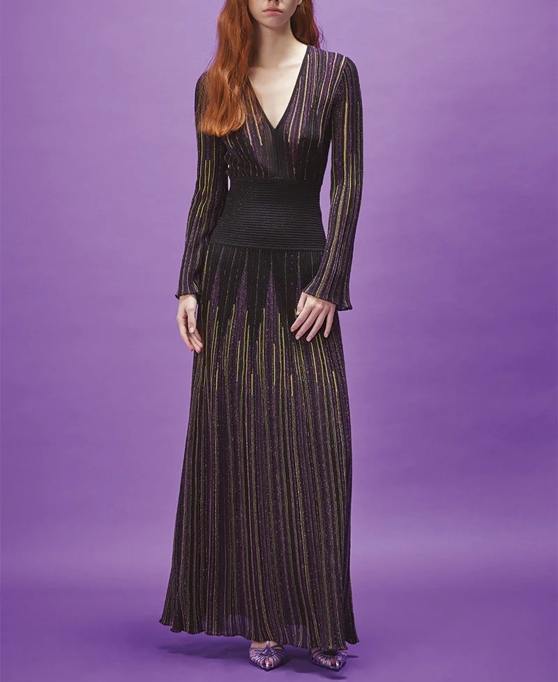 L’ Abito lungo Thomas NENETTE, รจ un abito in maglia jacquard multicolor, manica lunga, scollatura a V. Ideale per una cerimonia o per un evento sia di giorno che di sera.