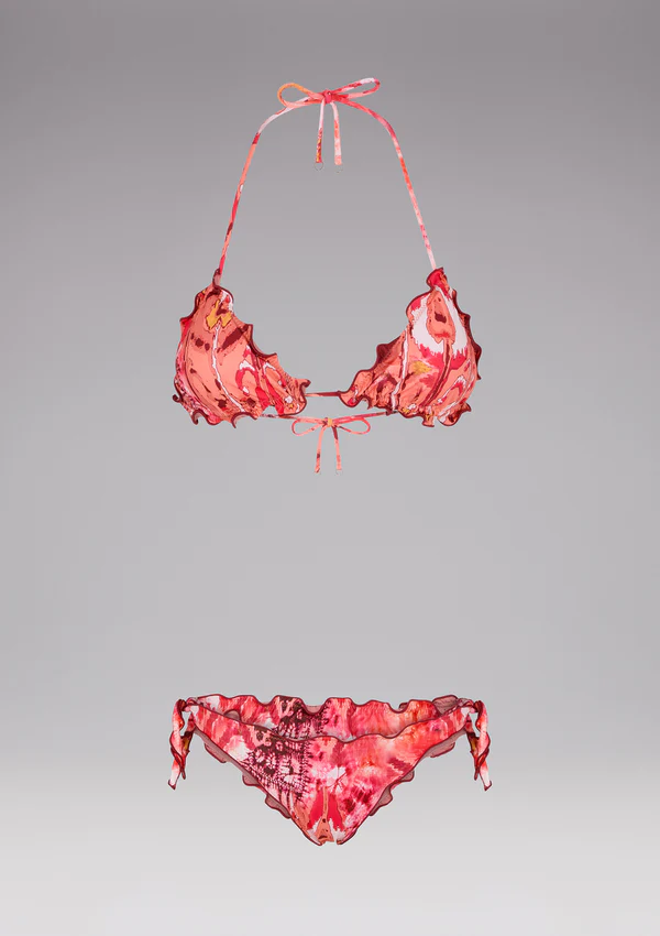 slip brasiliano e bikini triangolo, regolabile in vita in tessuto Lycra a fantasia rosa, per colorare le tue giornate estive.