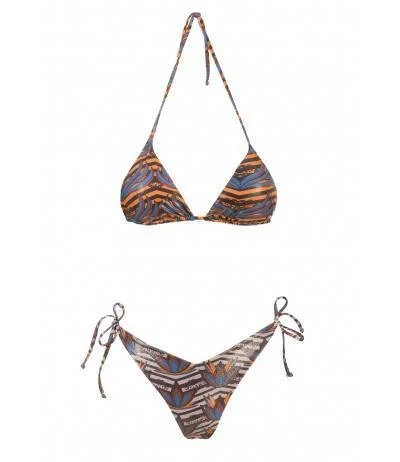 Bikini a triangolo con brasiliana in microfibra , stampa a fantasia azzurro metal.