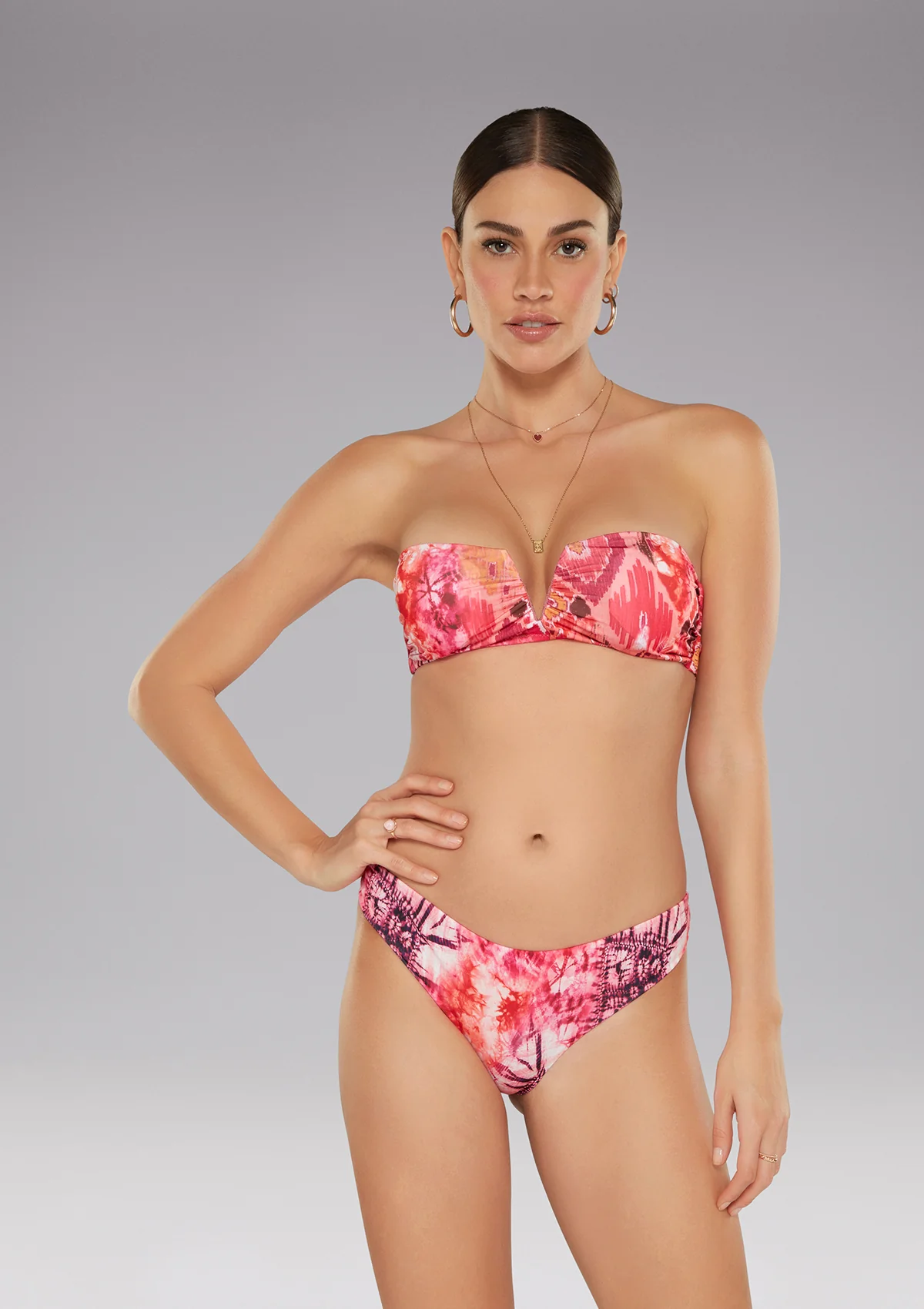 Se si vuole enfatizzare il colore rosa del bikini, si potrebbe scegliere un trucco delicato e naturale, oppure un trucco piรน audace e abbinato al costume da bagno, a seconda del proprio stile personale.