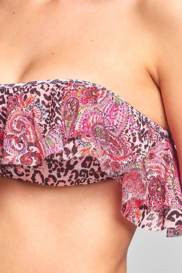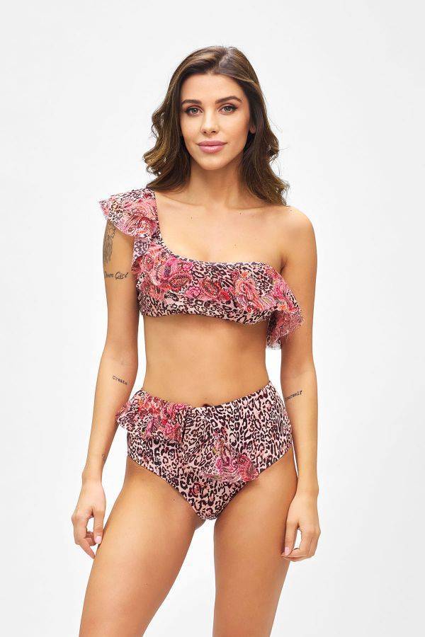 BIKINI MONOSPALLA A FASCIA FANTASIA MACULATA ROSA