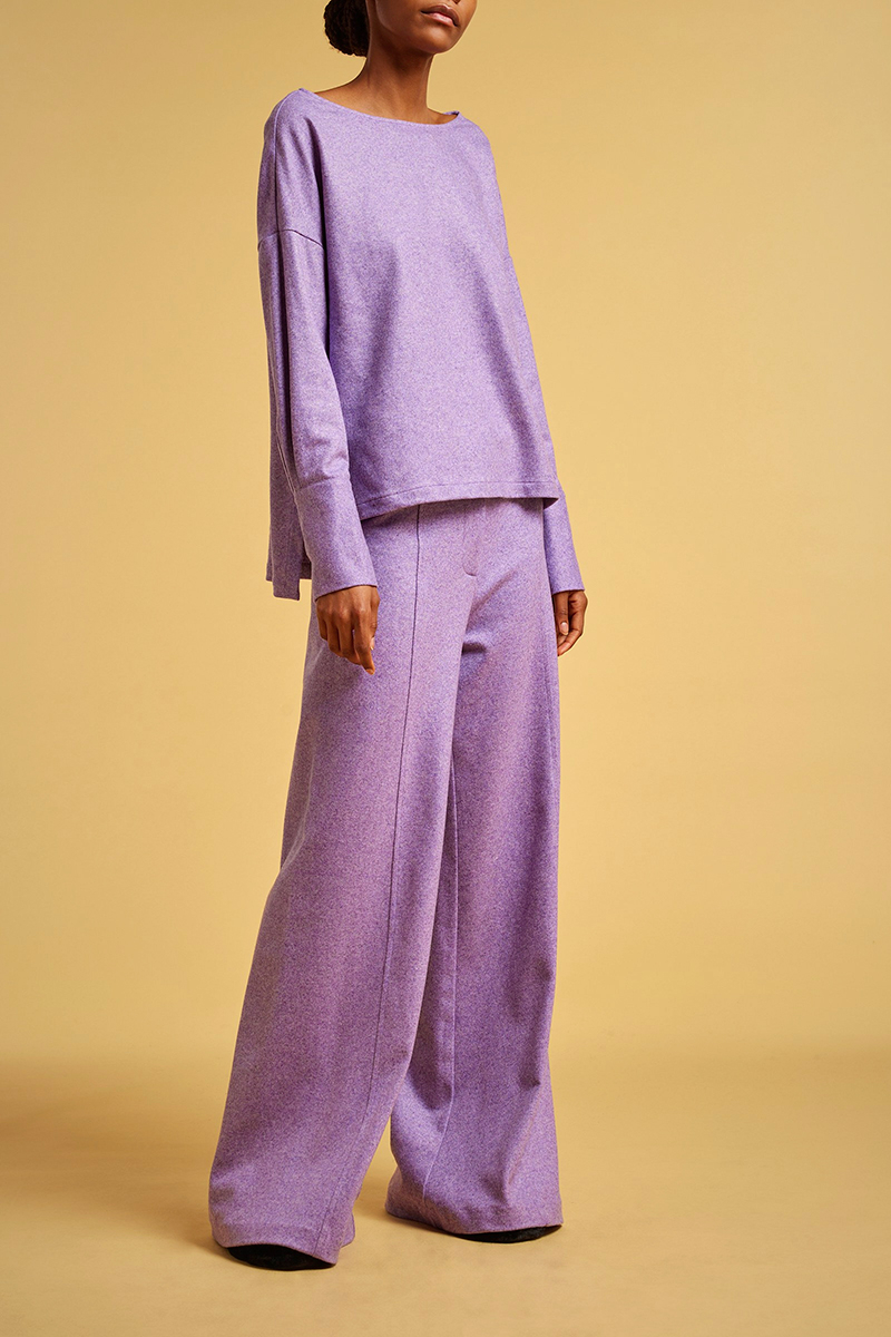 Blusa in panno leggero cashmere Girocollo ampio Spalla bassa Manica lunga con polsino alto al fondo Fondo asimmetrico con spacchetti laterali al fondo Vestibilitร regular Composizione: 70% Kashmir 30% Poliammide Made in Italy