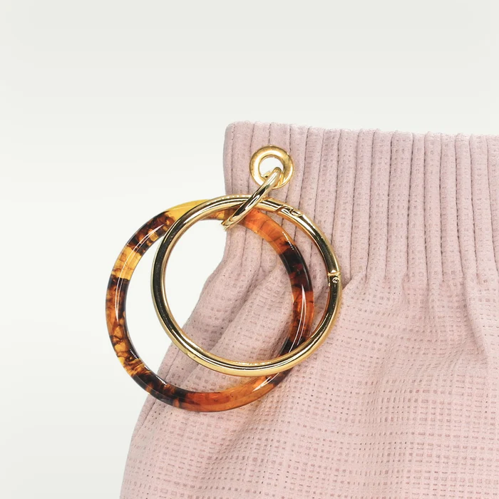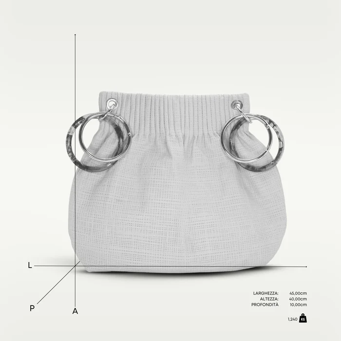 La Borsa B. B. Bracelet ALMALA, esprime eleganza e originalitร attraverso un design inconfondibile. Realizzata in pelle scamosciata stampata effetto rete, si caratterizza per la sua struttura morbida e il design iconico del brand. In questa versione, si arricchisce con doppi manici ad anello: due in metallo cromato apribili e removibili e due in resina acetato, che aggiungono un tocco di modernitร e raffinatezza.