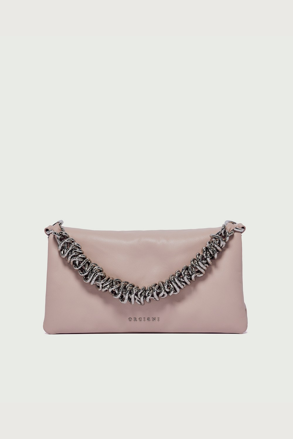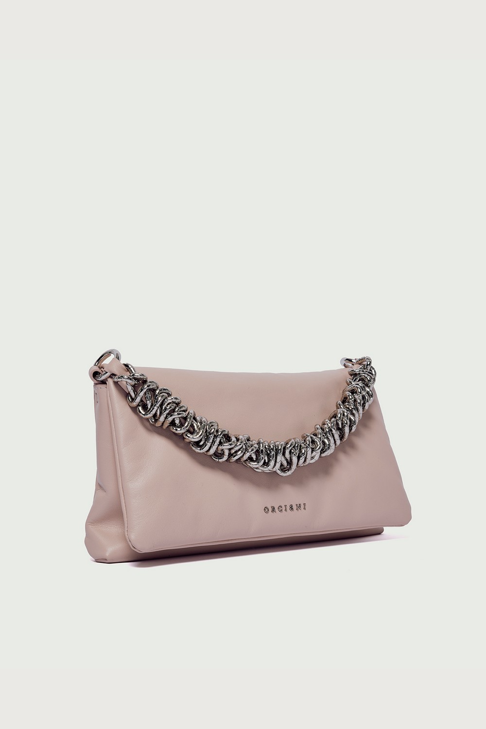 Borsa Clutch Nappa ORCIANI, una borsa dalle forme morbide e il design strutturato, perfetto trait-d’union fra passato e futuro. Dimensione perfetta per chi cerca eleganza e funzionalitร , arricchita dal dettaglio distintivo del manico chain, un elemento che esalta l’artigianalitร Orciani, con la sua lavorazione sofisticata e intrecciata, per un tocco di esclusivitร .