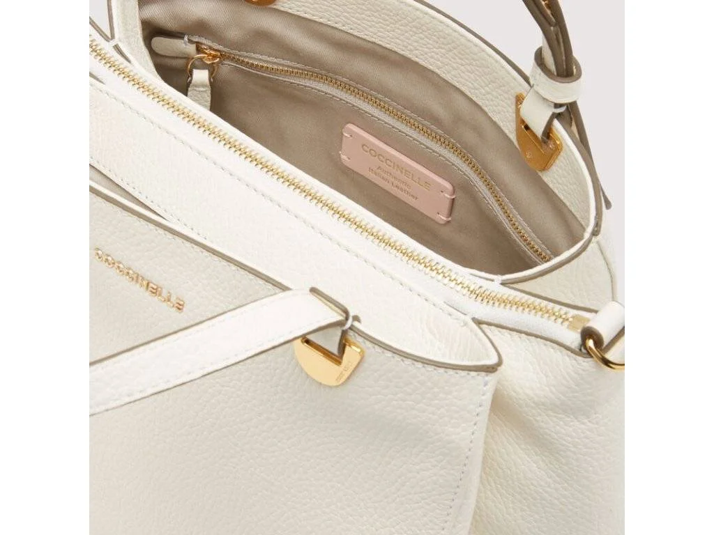 La borsa Coccinelle bianca “Lea” è una borsa a mano con uno scomparto interno chiuso con zip, ideale per la donna che lavora, ma non vuole rinunciare allo stile. I suoi raffinati dettagli in metallo a forma di plettro denotano uno stile attento e ricercato.