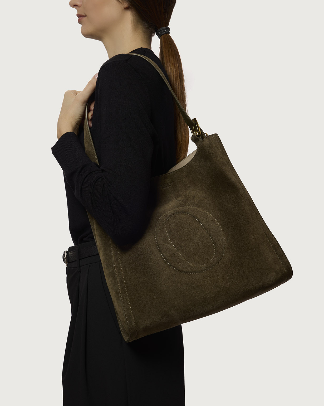 La Borsa Her-O Peach ORCIANI, รจ una borsa a spalla in pelle suede con manico a spalla regolabile.