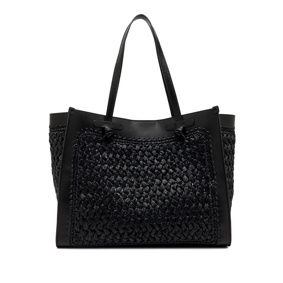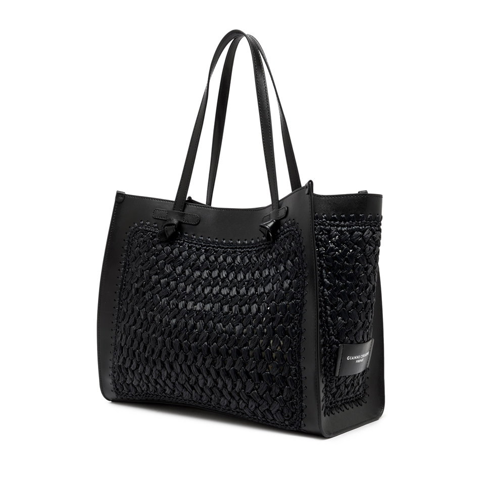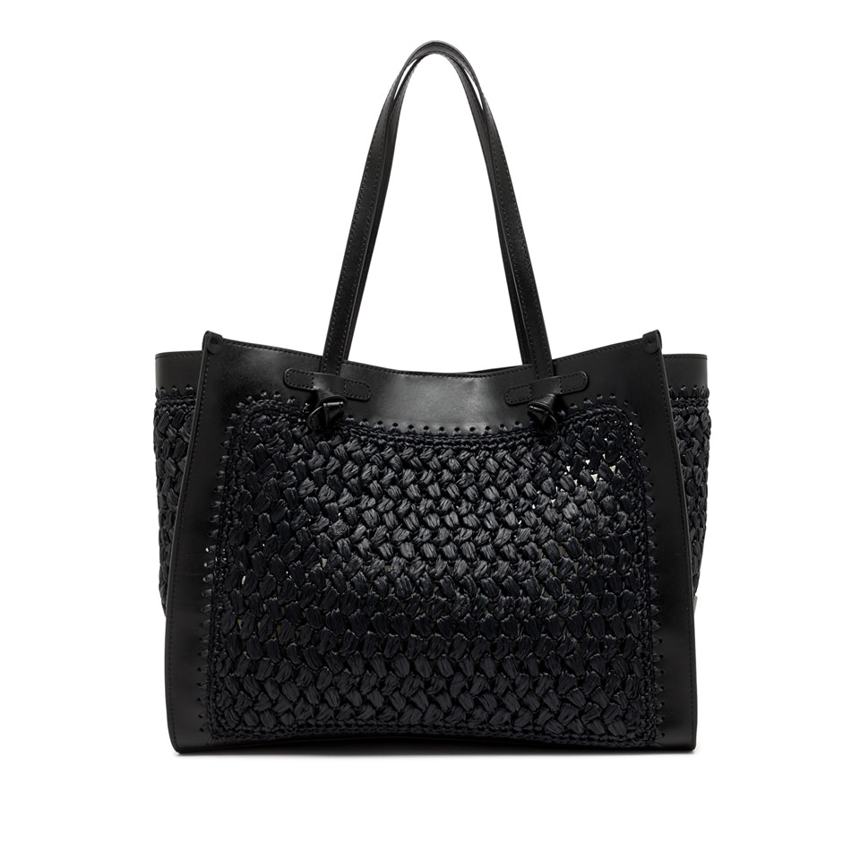La Borsa Marcella Rafia GIANNI CHIARINI, รจ una shopping, รจ realizzata in rafia attraverso la lavorazione ad uncinetto. Impreziosita dai profili in pelle che valorizzano la naturalitร dei suoi colori. Dotata di manici in pelle e di una comoda chiusura tramite magnete รจ ideale per un utilizzo daily. La pochette in pelle la rende pratica e versatile.