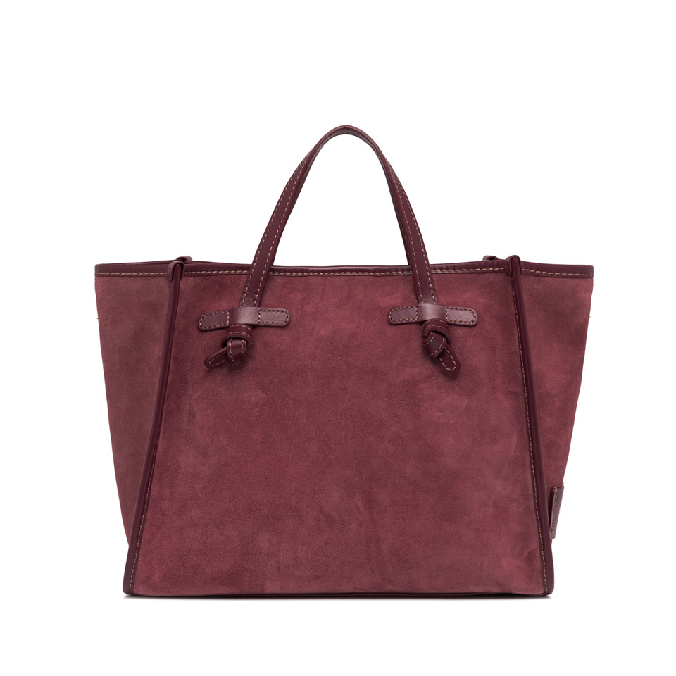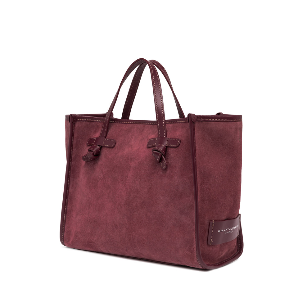 Borsa Miss Marcella 32 Realizzata in pelle scamosciata Profili in pelle in tono Manici in pelle Chiusura tramite magnete Fodera interna Pochette in pelle Tracolla in pelle Dimensioni: 33x25x13 cm Made in Italy