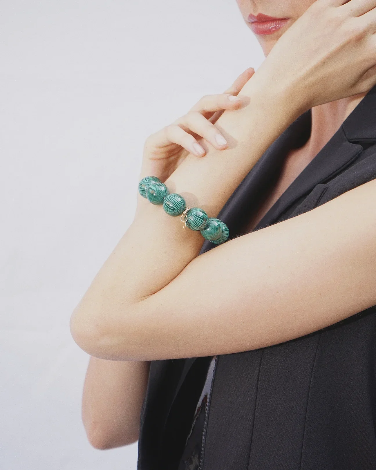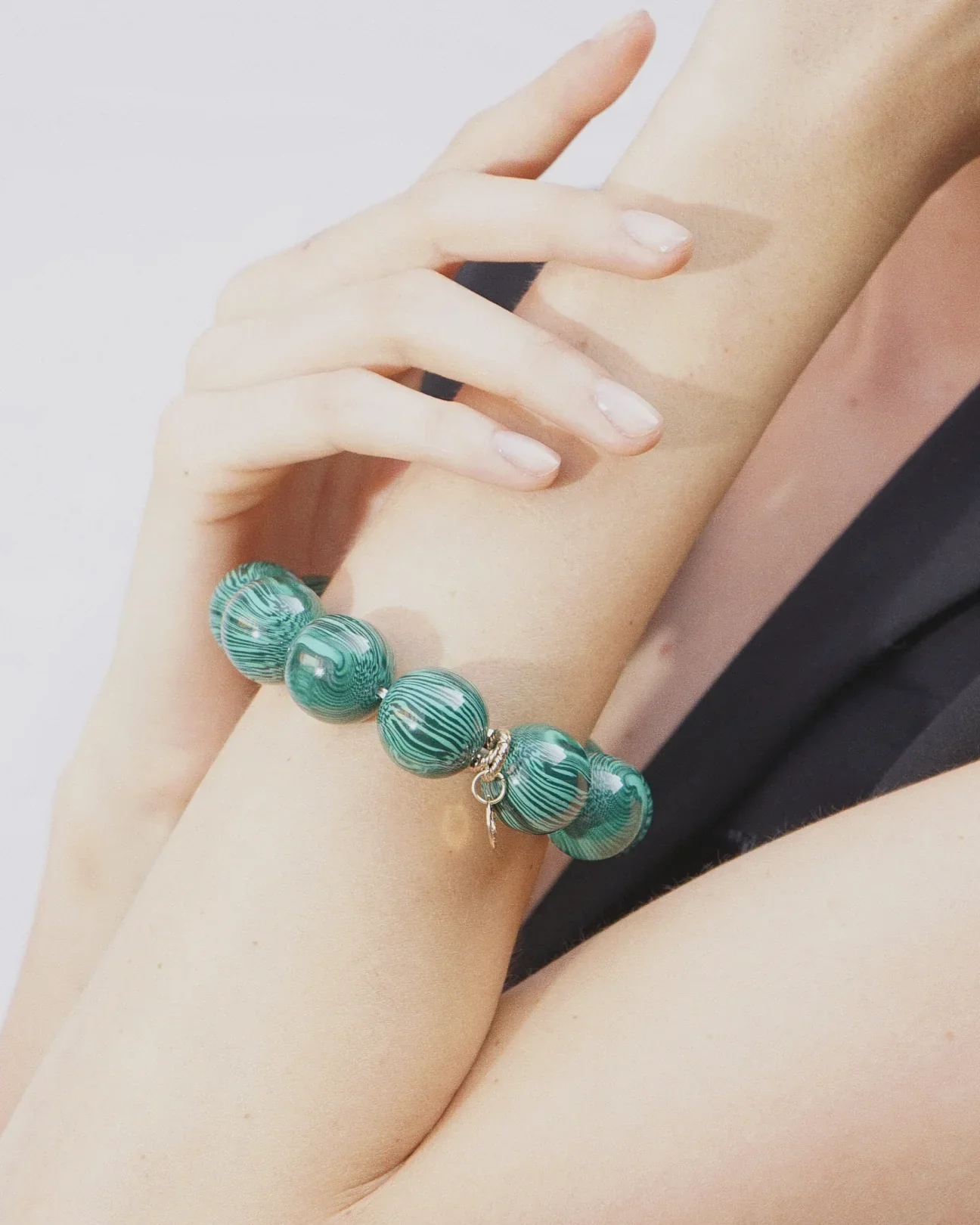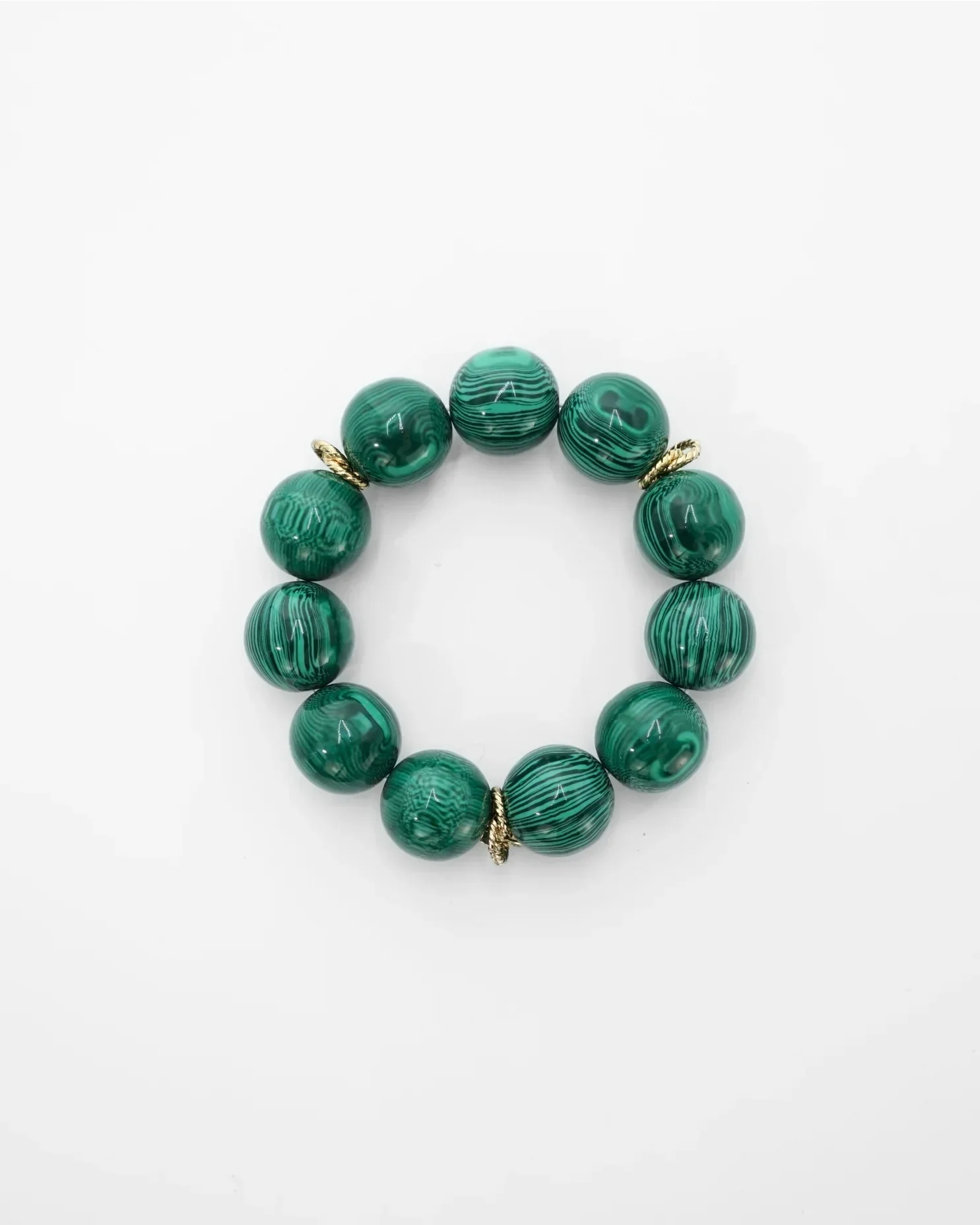 Il Bracciale Balls ALMALA, รจ un bracciale elasticizzato composto da grandi sfere in resina, arricchito da piccoli dettagli dorati inseriti tra le sfere.