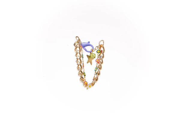 Bracciale in ottone e metallo smaltato Moschettone in resina acetato colorato Realizzata a mano Peso: 25 gr Made in Italy
