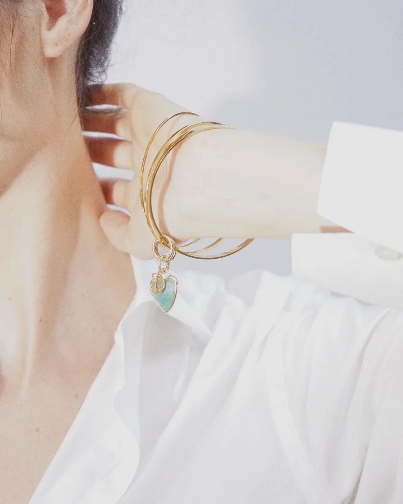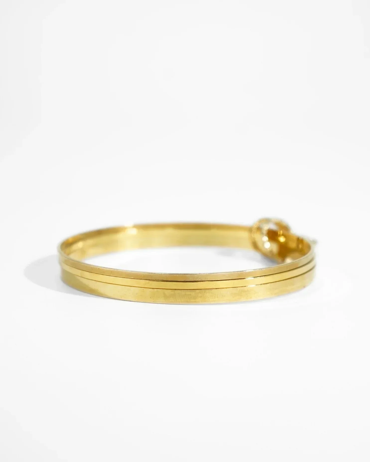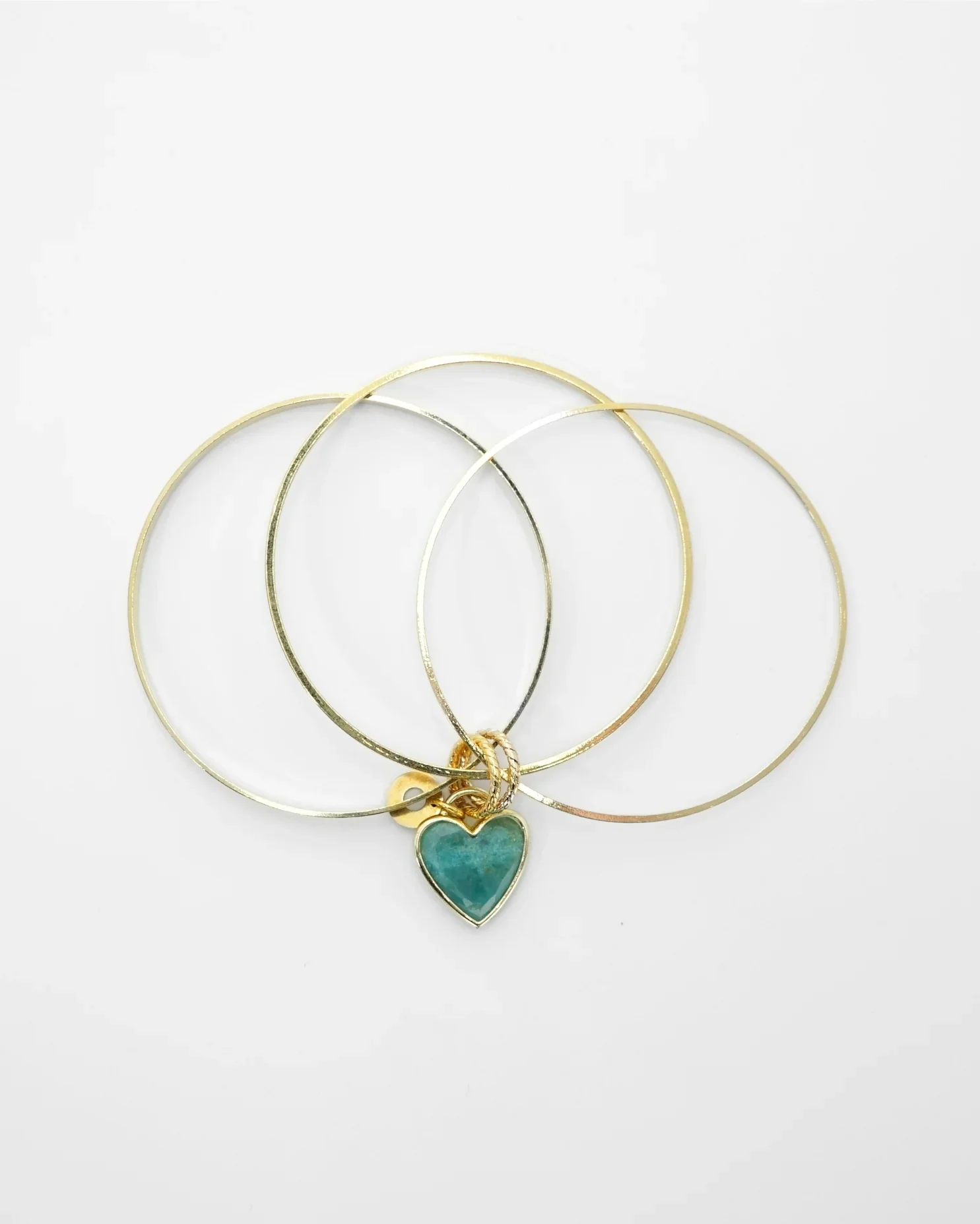 Il Bracciale Cuore ALMALA, รจ un bracciale composto da tre cerchi rigidi di altezze differenti in metallo dorato, uniti da un “nodo” centrale da cui pende un cuore bordato in metallo dorato.